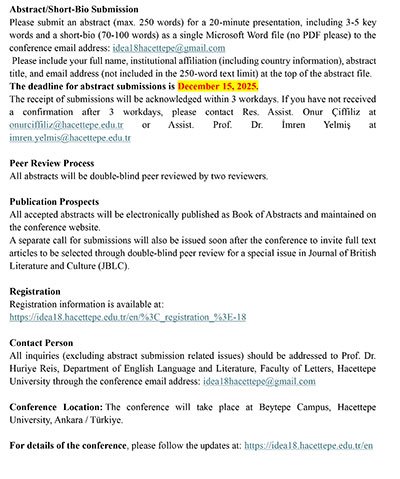 18. Uluslararası IDEA Konferansı Çağrı Metni